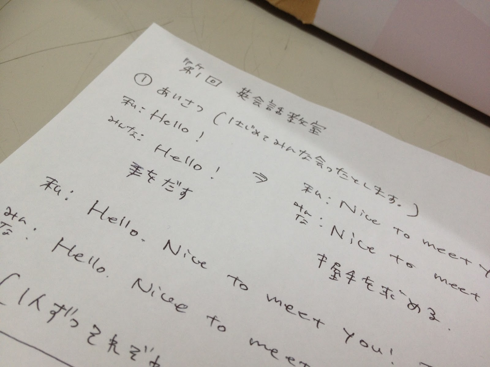 仮設住宅での第一回英会話教室の流れ。