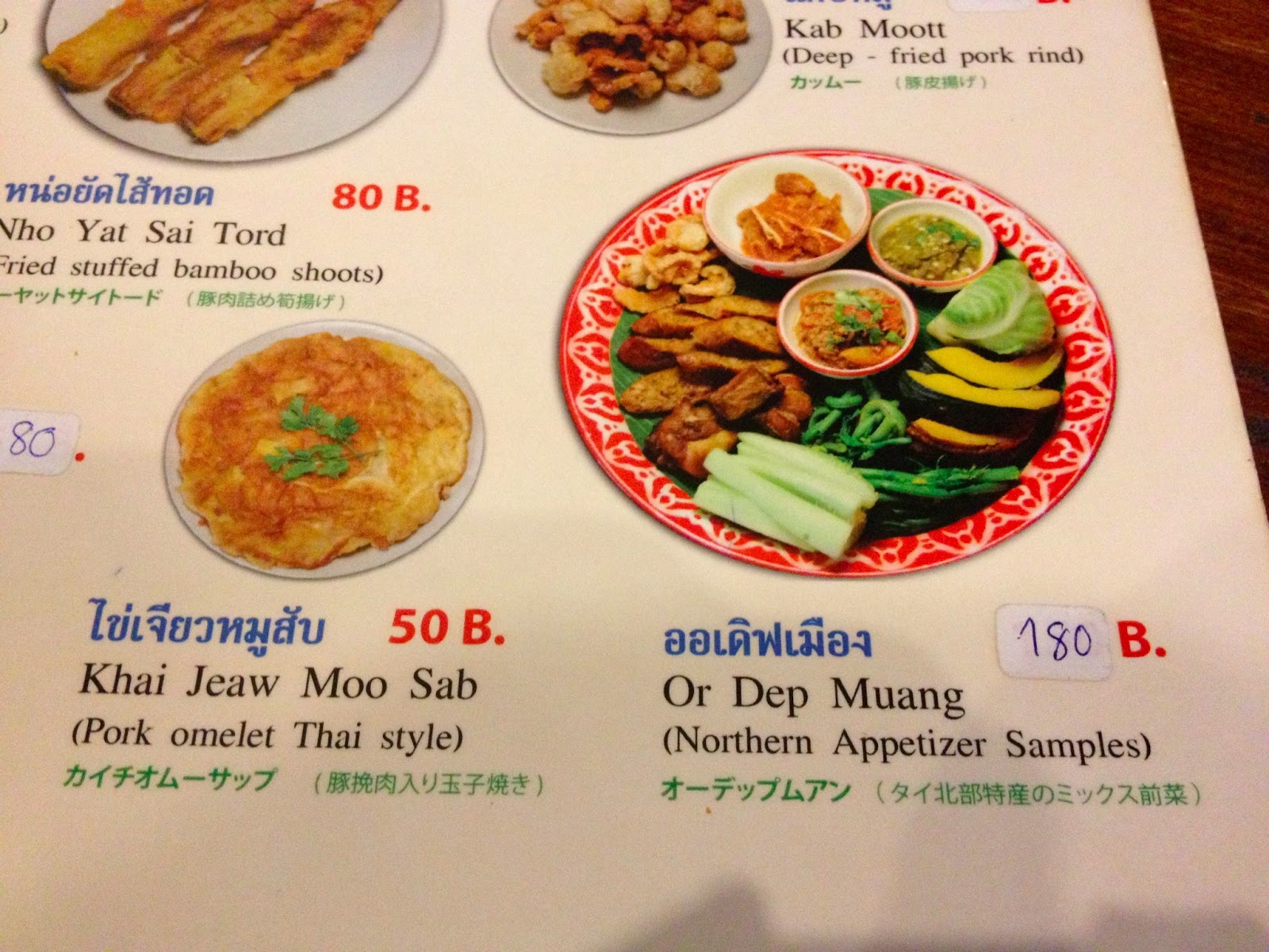タイ北部特産のミックス前菜180Bを