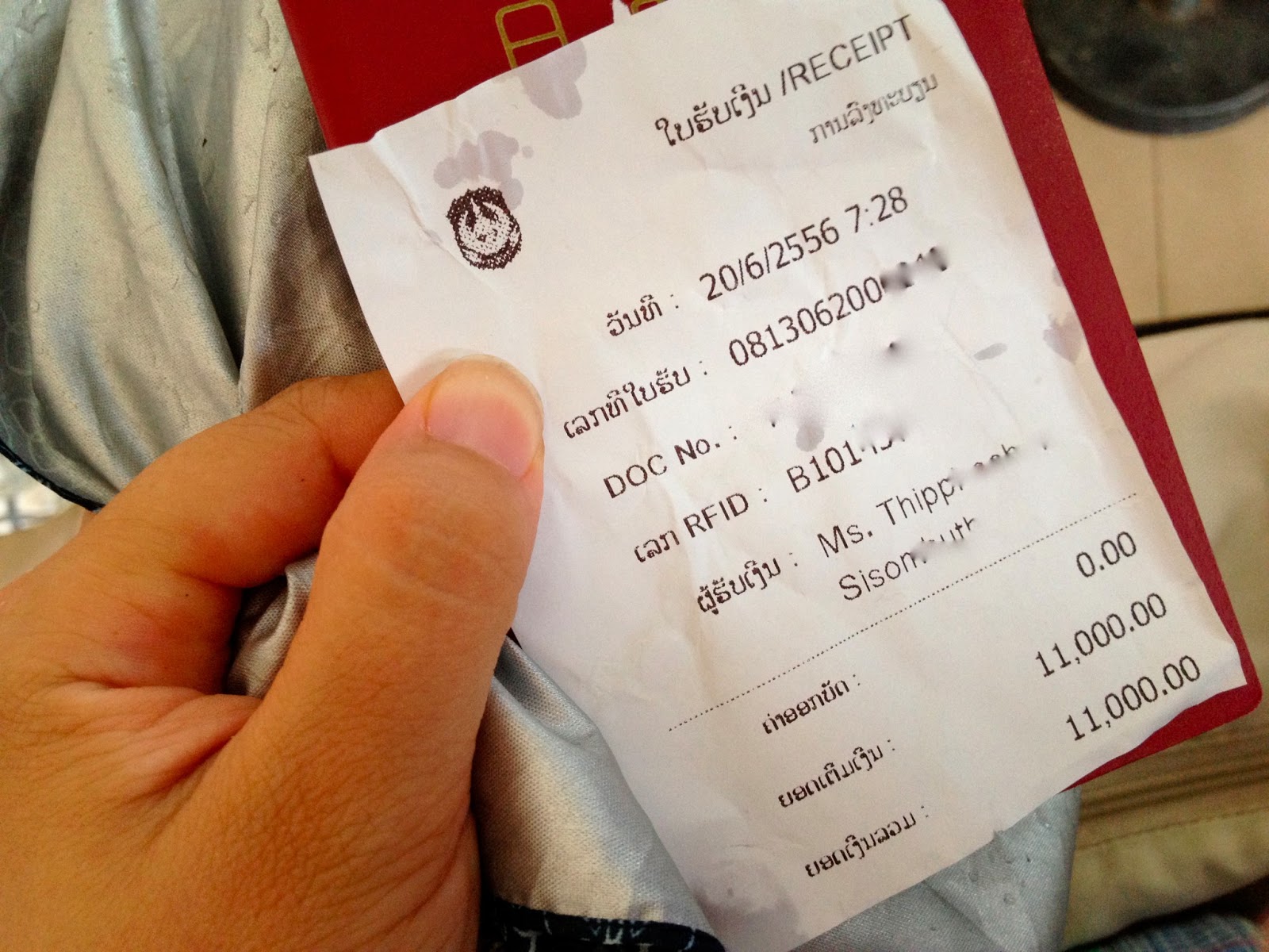 支払う必要あり。11,000kip。