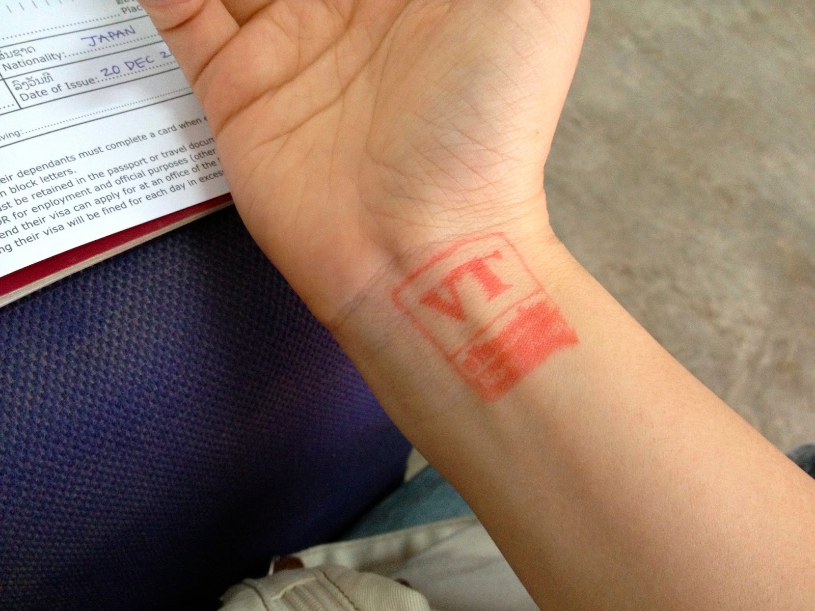 手首にハンコ。