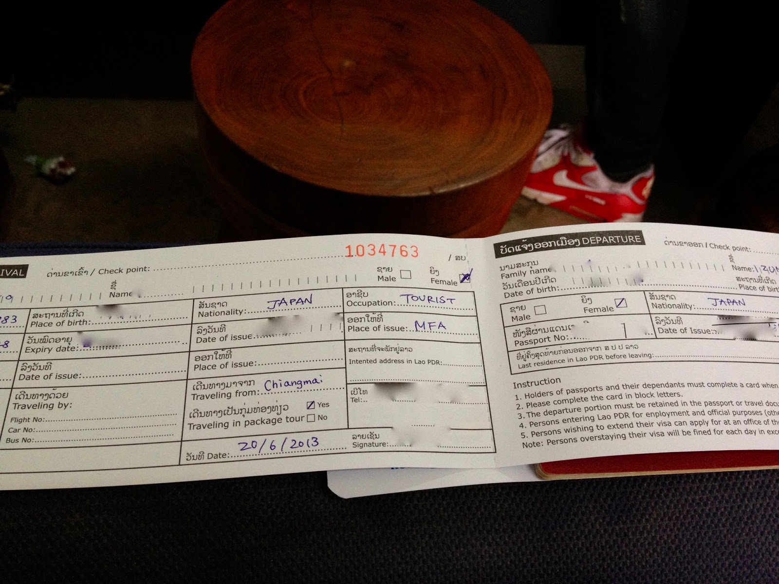 一階のカウンターでラオスへの入国カードを書く。