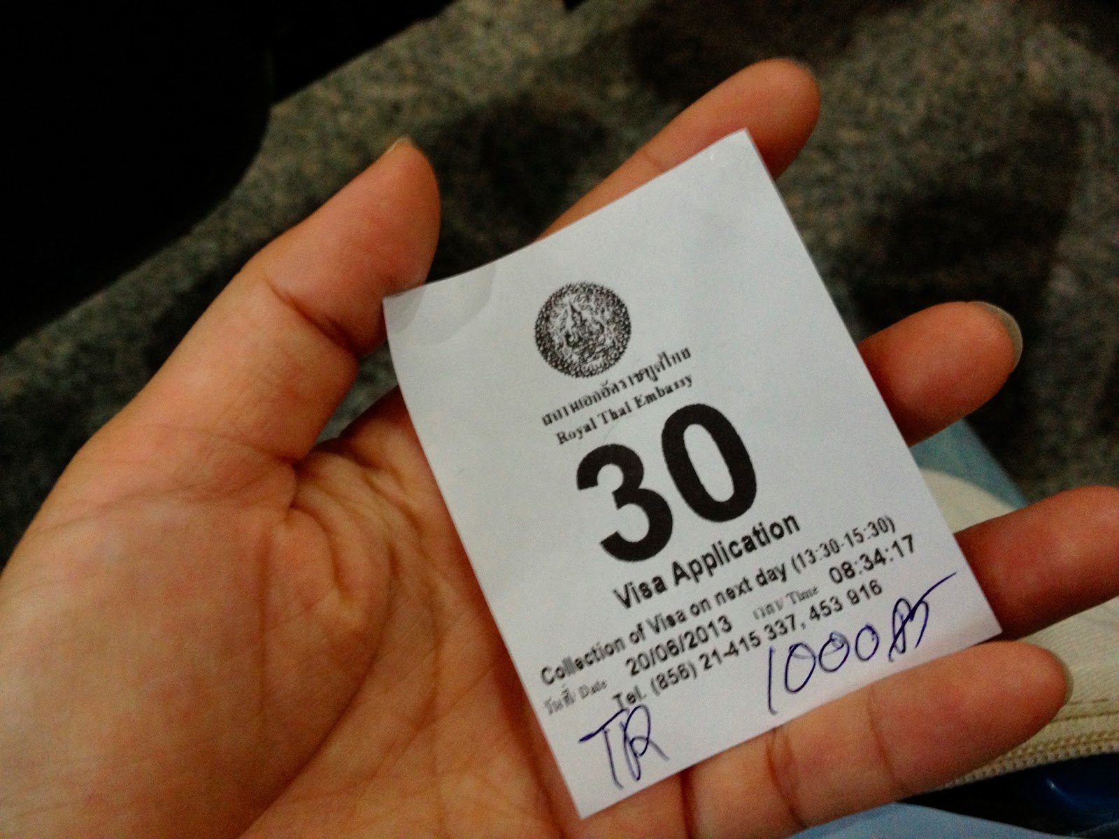 申請用紙を書くのに2000Bと言われたらしい。