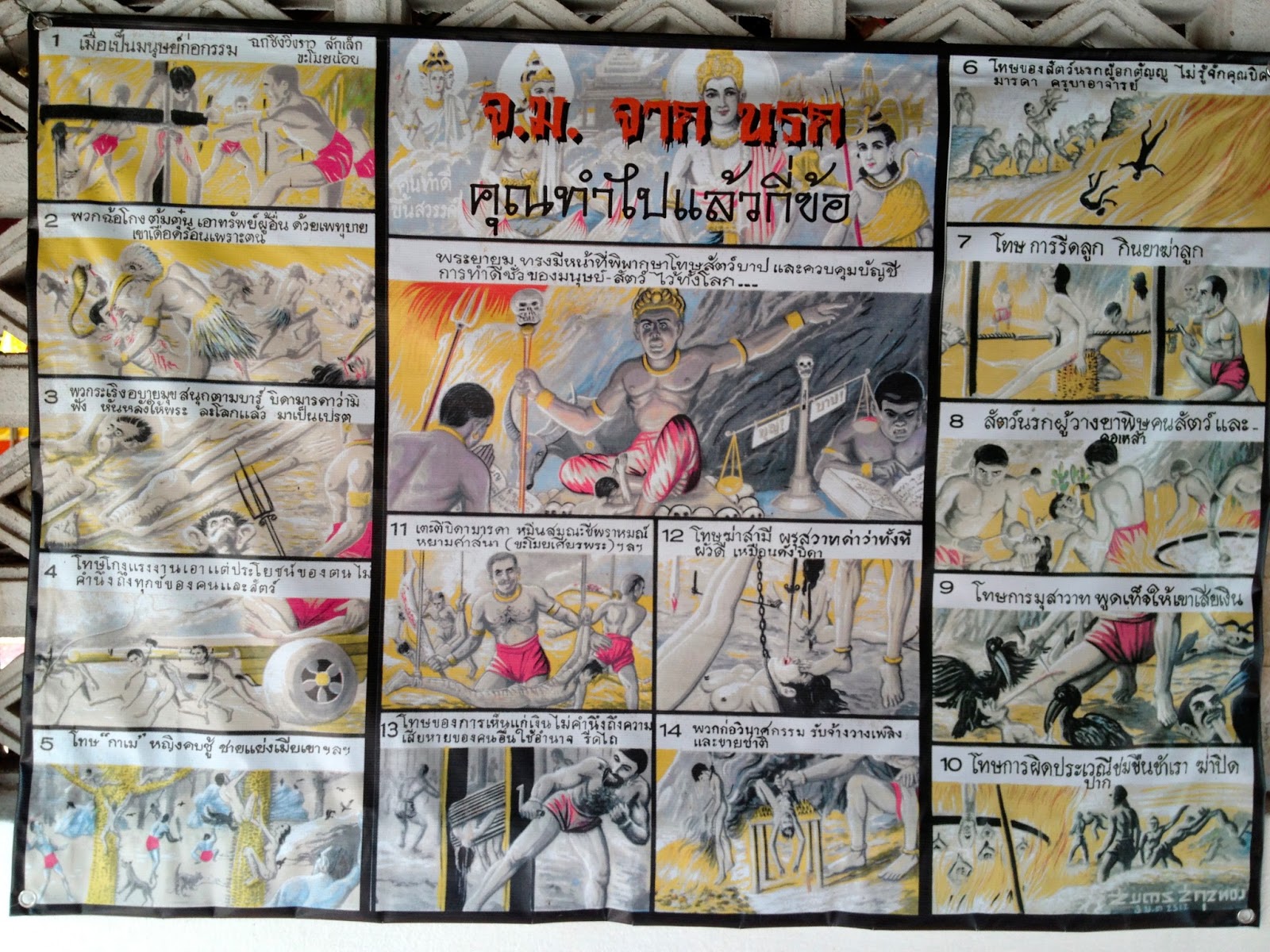 何人かのブログでも見たワットに飾られている地獄絵図。