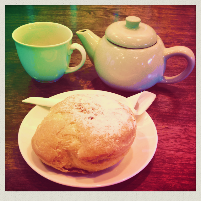 シュークリームを少しずつ食べながら
