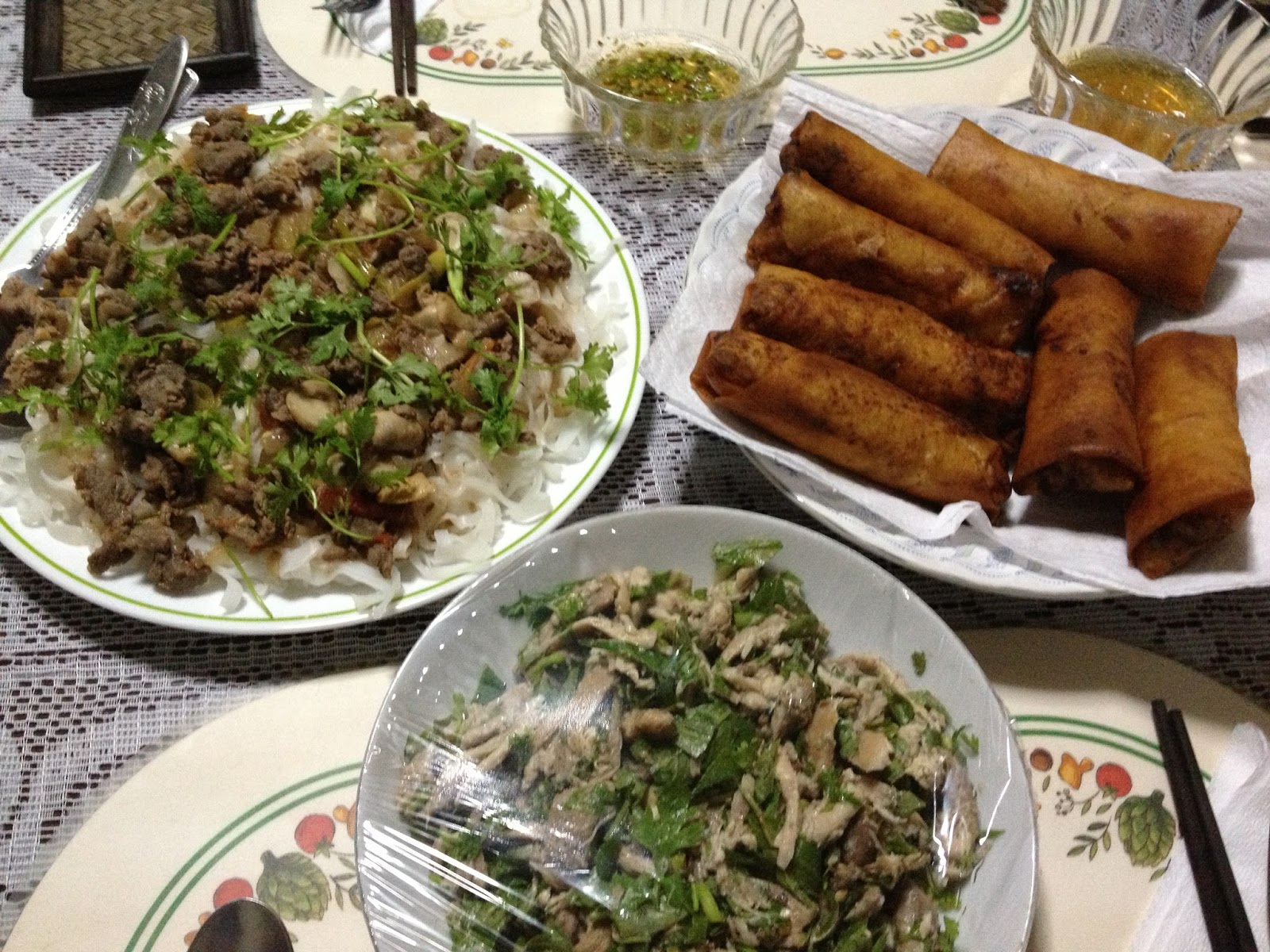 春巻きとチキン&ハーブのサラダ。