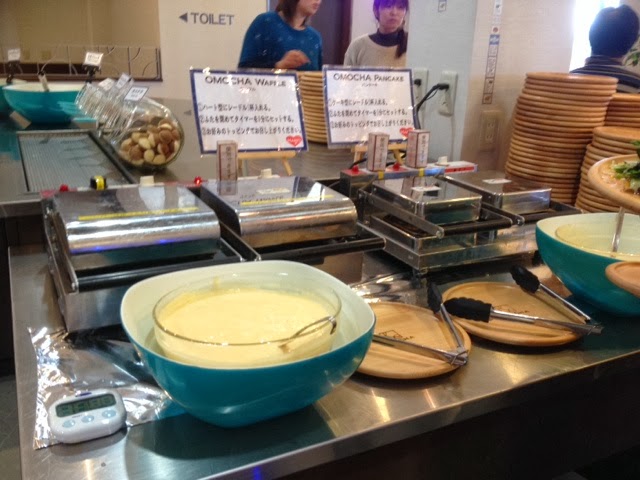 ワッフルを自分で焼く機械があり、